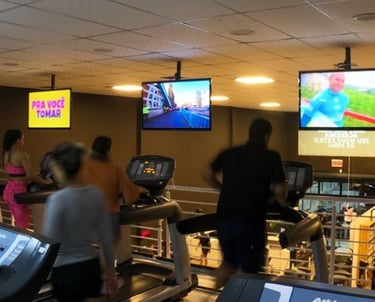 As telas exibem anúncios, promoções e informações de forma dinâmica, modernizando o ambiente e criando uma experiência visual mais atrativa para os clientes.